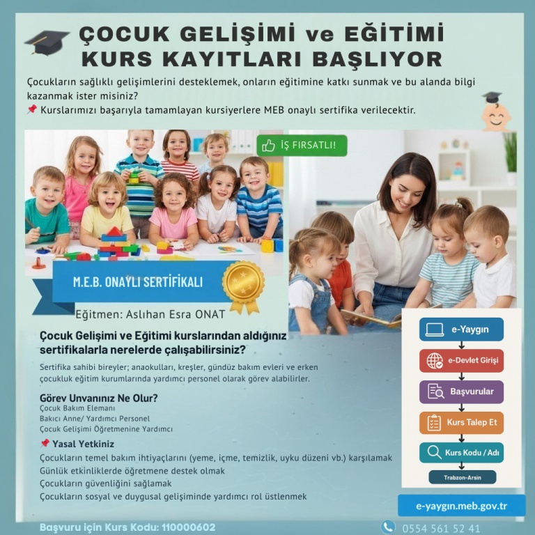 Çocuk Gelişimi ve Eğitimi Alanı Kurs Kayıtları Başlamıştır!